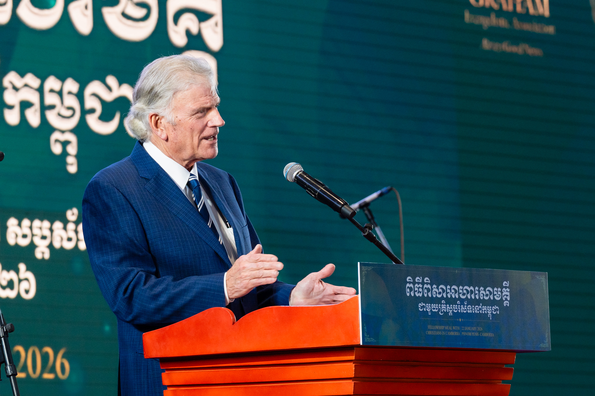 Franklin Graham preaching in Phnom Penh, December 2019